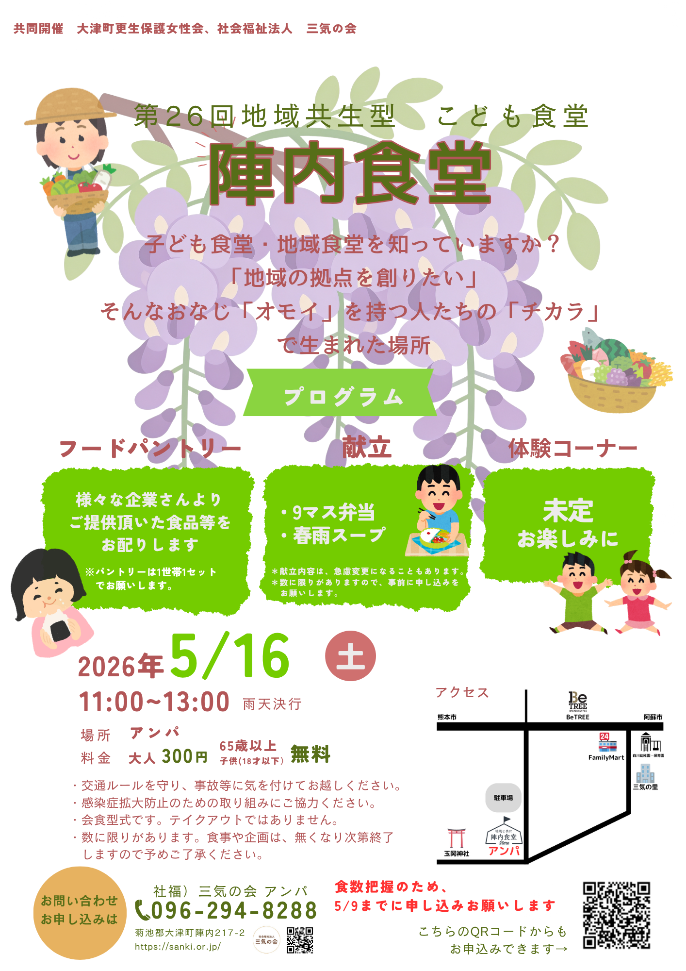 2026.04.11 ご案内 陣内食堂 2026春 きたる5月16日土曜日に、第26回陣内食堂を開催します お誘いあわせの上ふるってご参加ください フードロス軽減へのご協力に感謝いたします 食数把握のため、事前のお申込みをお願い致します