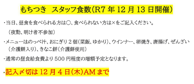 当日の食事希望をスタッフ室ホワイトボードの名簿にご記入ください